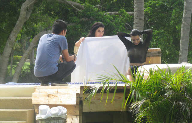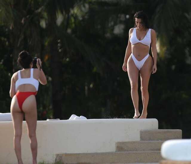 Kim Kardashian fotoğraf çekimindeÇekimlerde Kardashian'ı kardeşi Kourtney de yalnız bırakmadı.
