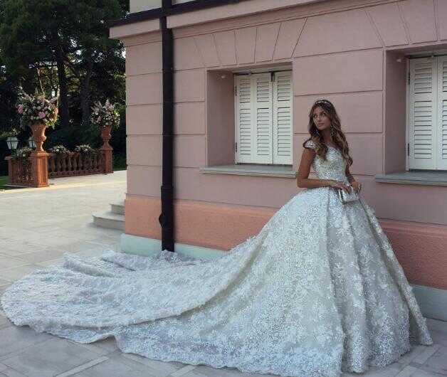 Gelin Elina Bazaeva törende ünlü modacı Zuhair Murad'ın imzasını taşıyan gösterişli bir gelinlik giydi.