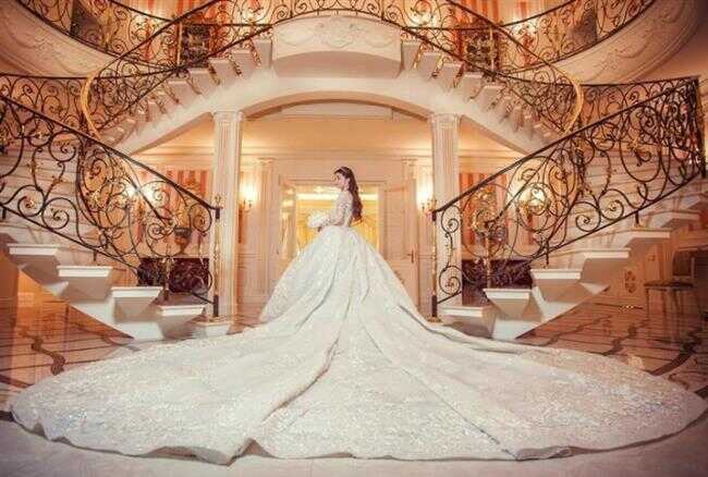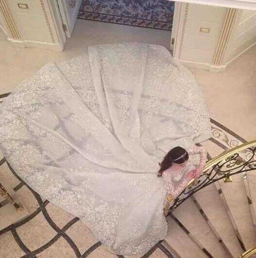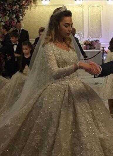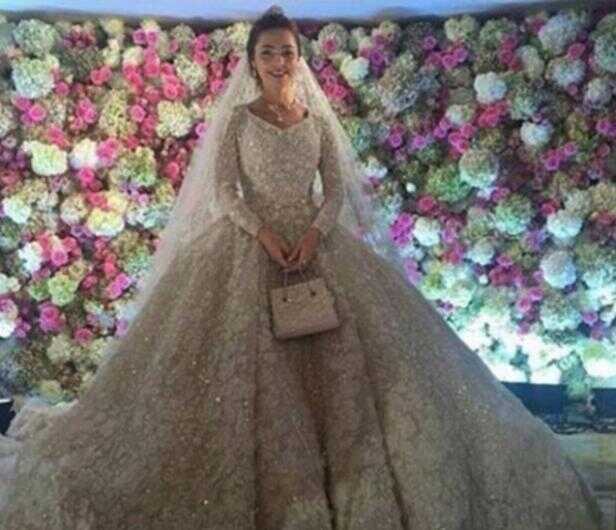 Genç kızın Paris'ten alınan ve ünlü tasarımcı Elie Saab'ın imzasını taşıyan gelinliğinin ağırlığı süslemeleriyle birlikte 11 kilo geliyordu.